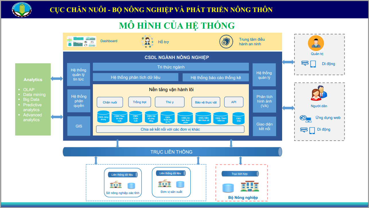 tại Quyết định số 5275/QĐ-BNN-VP ngày 31/12/2021, Cục Chăn nuôi đã phối hợp với Tập đoàn VNPT xây dựng phần mềm cập nhật cơ sở dữ liệu về cơ sở chăn nuôi, cơ sở thức ăn chăn nuôi; - Công văn số 8107/BNN-TY ngày 01/12/2022 của Bộ Nông nghiệp và PTNT giao Cục Chăn nuôi xây dựng dữ liệu quốc gia về số lượng nhà nuôi chim yến, sản lượng tổ yến sát với thực tế, có độ