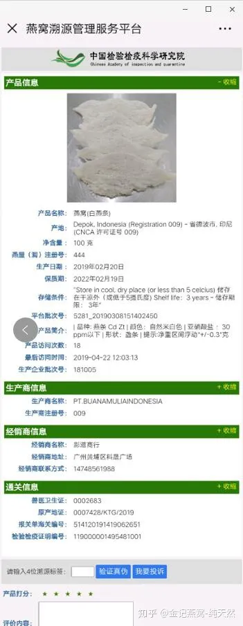 Thông thường, bạn có thể sử dụng WeChat hoặc các điện thoại di động khác để quét mã QR trên tổ yến để kiểm tra thông tin truy xuất nguồn gốc sản phẩm. Đảm bảo rằng URL được mở bằng cách quét mã là http://ebn.caiq.org.cn, đồng thời có thể cào mã chống hàng giả để kiểm chứng tính xác thực của sản phẩm